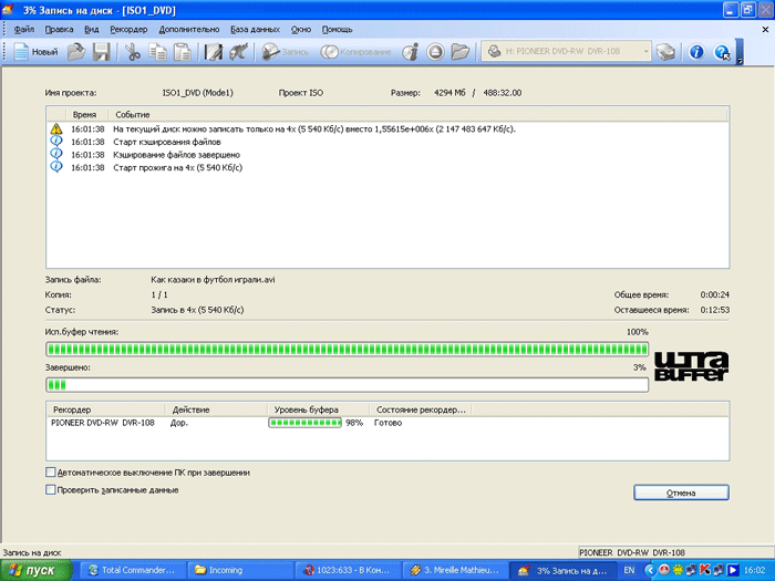 | Фигня 1. Вот что мне выдал только что компьютер. Смотрите на события. (скорость записи)